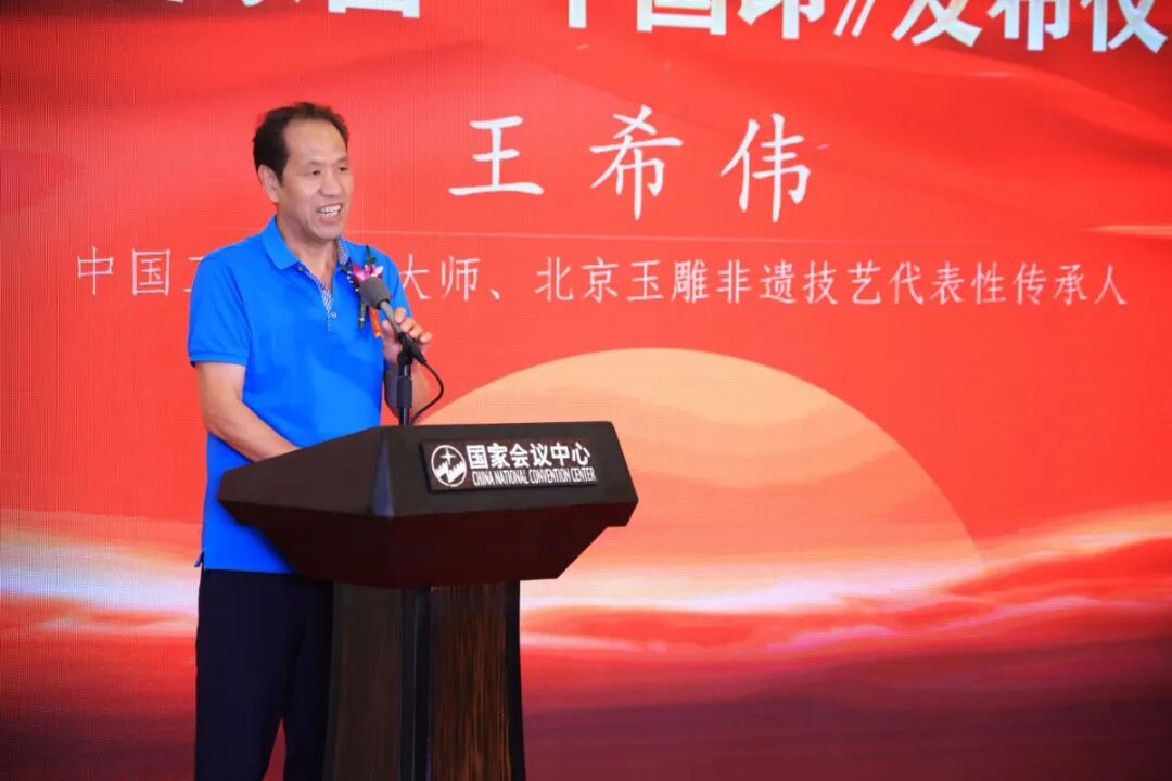 王希伟大师特别分享了作品背后的匠心故事,他表示,玉是有灵性的,雕刻的过程,正是与历史对话的过程。玉琮本是“敬天礼地”的礼器,用它来表达“强军兴邦”的信念,也是中国传统文化在新时代的生命力体现。作品创作以“86 国宝工程”和北京奥运徽宝为标准,希望为这个时代留下一件有温度、有重量的作品。