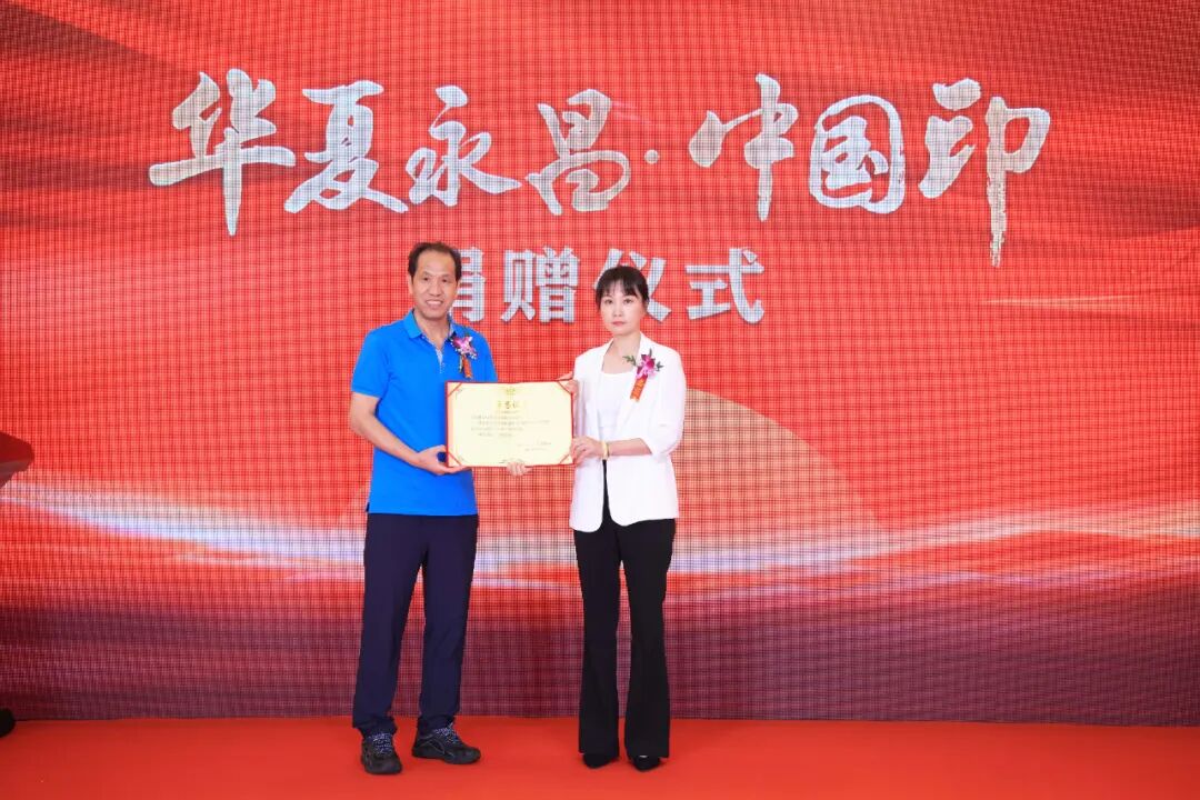 活动现场还举行了捐赠仪式,创作大师王希伟向沈阳“九·一八”历史博物馆捐赠《华夏永昌·中国印》碧玉珍藏版 918 号和青玉纪念版 1931 号这两个具有纪念意义的编号,希望这件作品因其承载的团结力量和复兴梦想,成为连接时代的文化纽带。